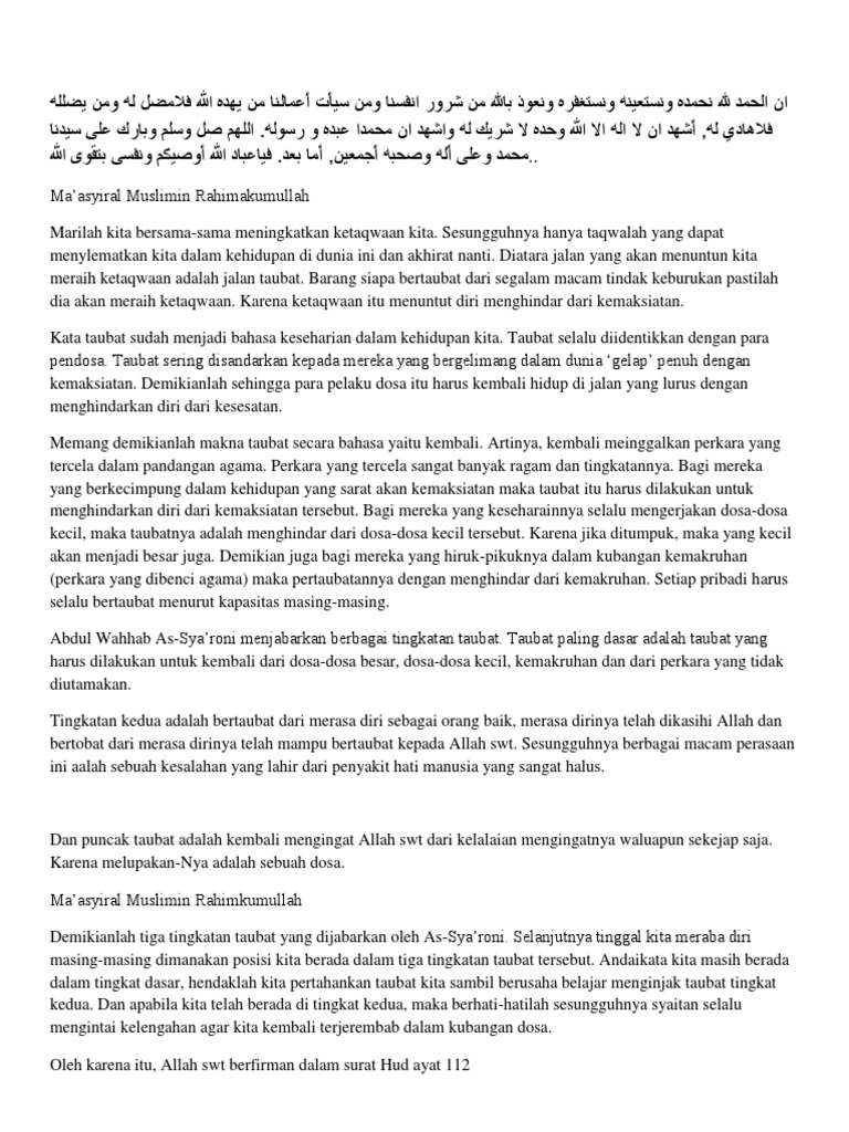 إ ن ال ح م د ل ل ه ن ح م د ه و ن س ت ع ي ن ه و ن س ت غ ف ر ه و ن س ت ه د ي ه و ن ع وذ ب الله م ن ش ر و ر أ ن ف س ن ا و م ن س ي ئ ات أ ع م ال ن ا