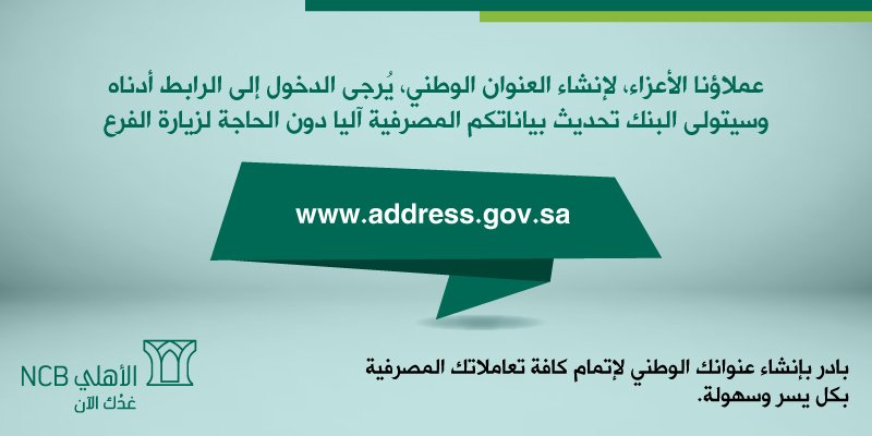 تحديث العنوان الوطني البنك الاهلي نواعم