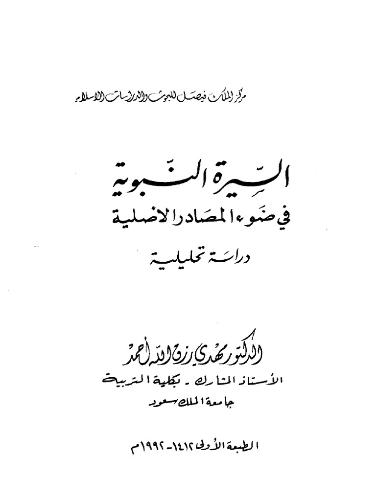 السيرة النبوية في ضوء المصادر الأصلية دراسة توثيقية تحليلية Pdf