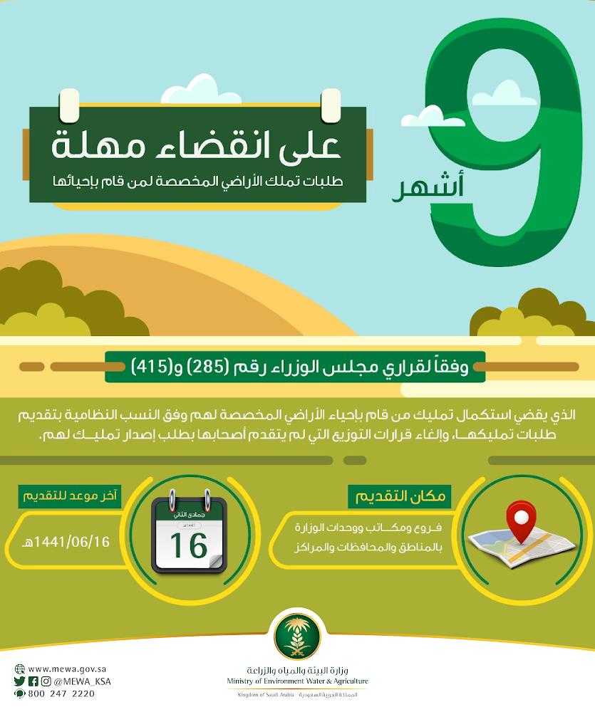 البيئة 9 أشهر مهلة لطلبات تملك الأراضي المخصصة